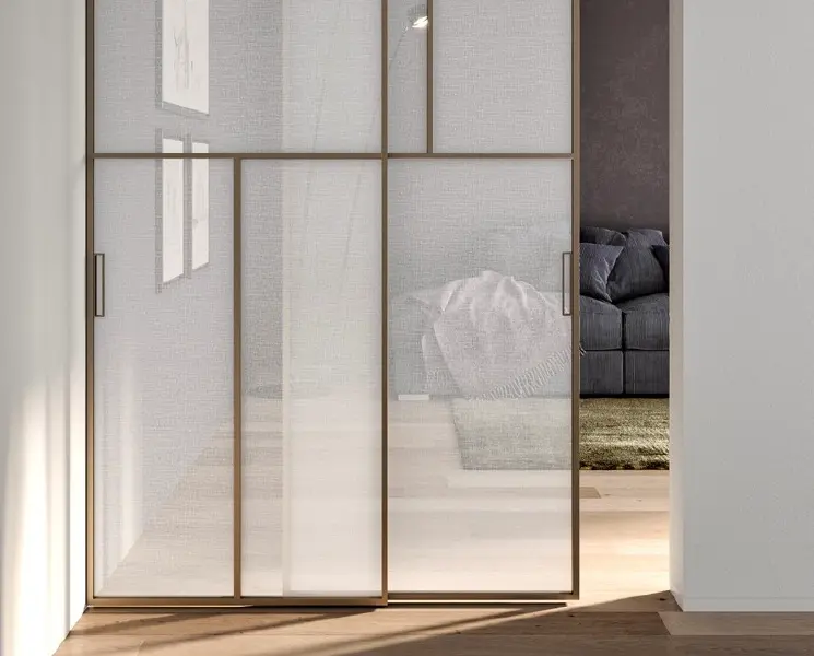 Our synchronized sliding systems allow for seamless and synchronized movement of doors. With just one pull, both doors open, making them ideal for spaces like walk-in closets or conference rooms. The system is track-free on the floor, enhancing the minimalist design while providing easy access.